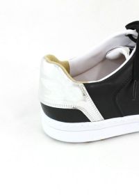 シューズ ゴルフシューズ スパイクレスシューズ 牛革 エナメル調 異カラー メタリックディティール ロゴワッペン 配色切替え